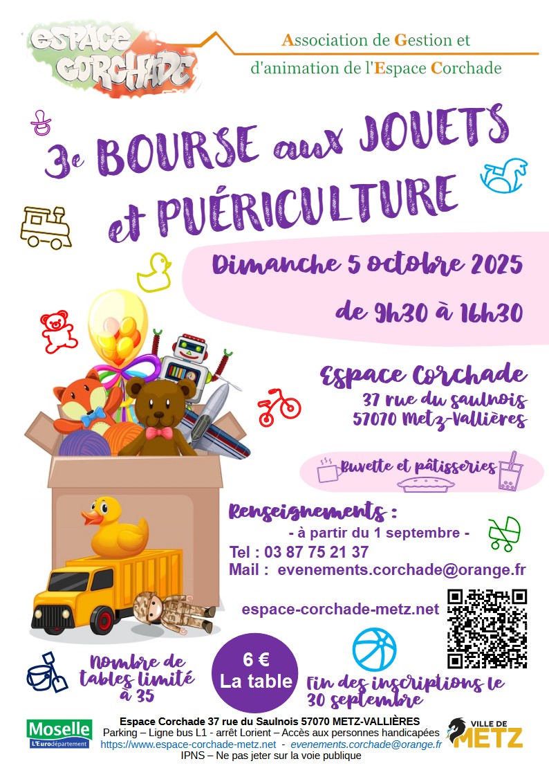 Les inscriptions pour notre bourse aux jouets sont désormais fermées. Nous avons atteint le nombre maximum de participants. Merci de votre intérêt !