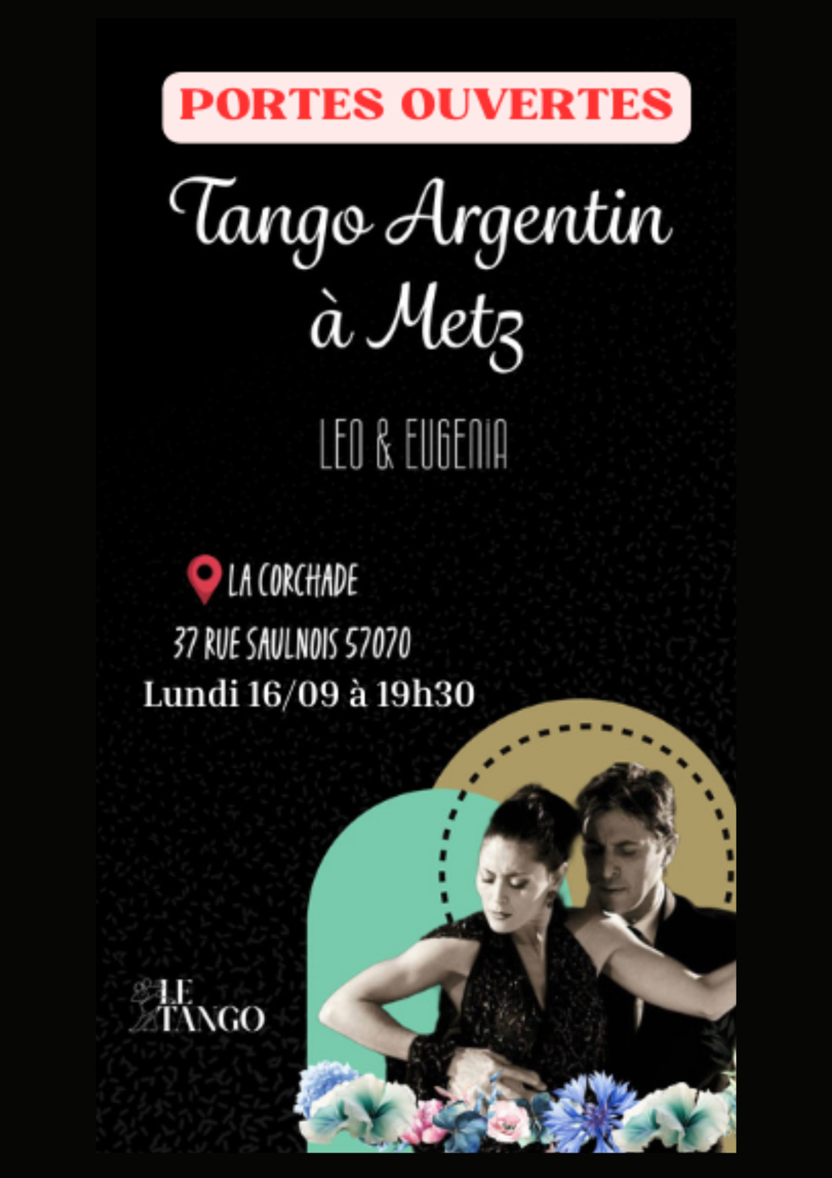 Venez découvrir le Tango à la Corchade à Metz le 16 septembre avec de grands Maestros Argentins Leo y Eugenia, qui auront le plaisir de vous initier à cette jolie danse.