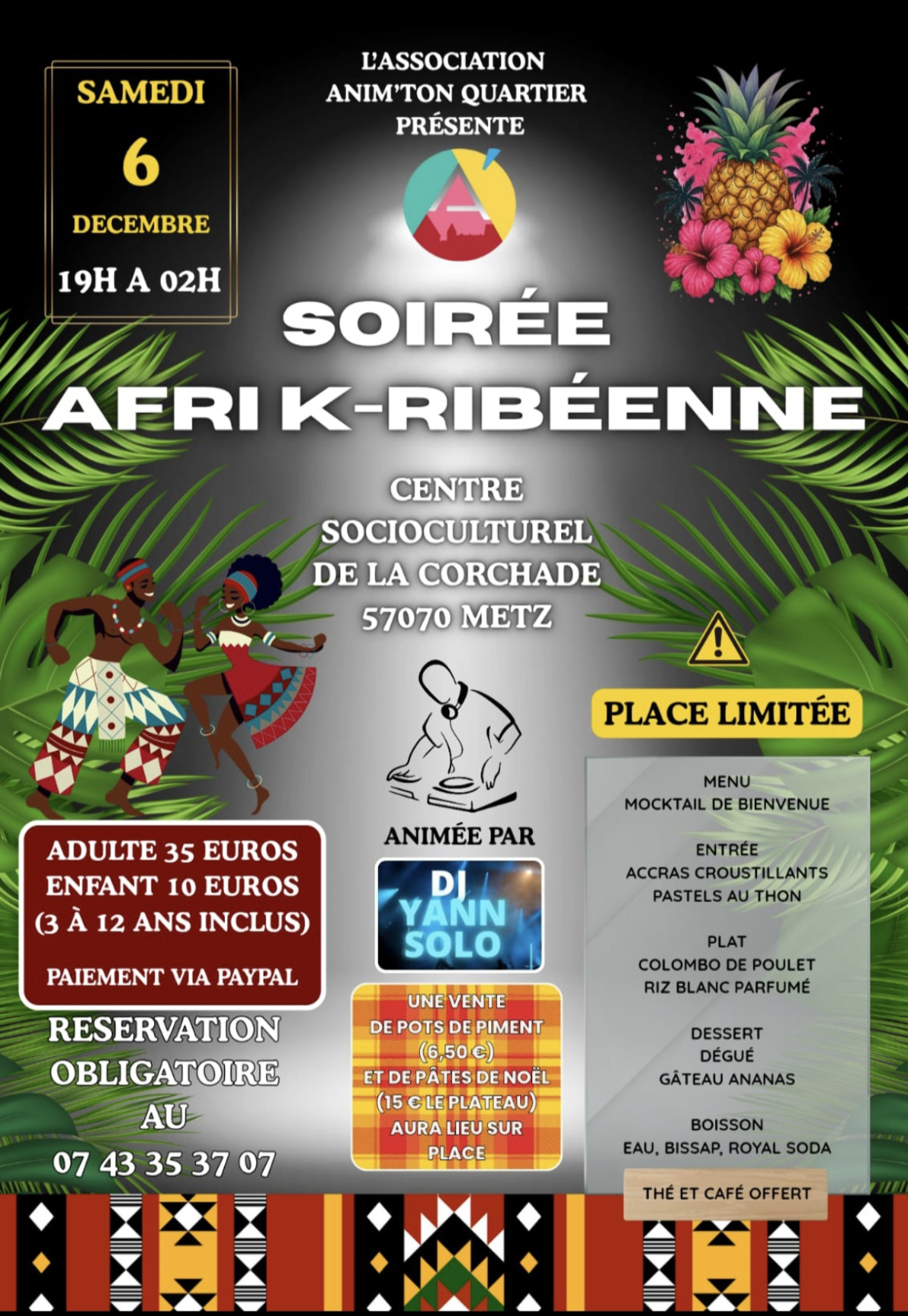 Repas dansant sur le thème de l’Afrique et des Caraïbes.